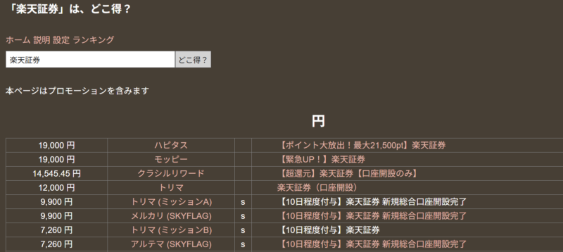 先ほど同様、普通に楽天証券の公式HPにアクセスして購入するのではなく、下記の手順で最もお得なポイントサイトを経由して楽天証券口座を開設しましょう!